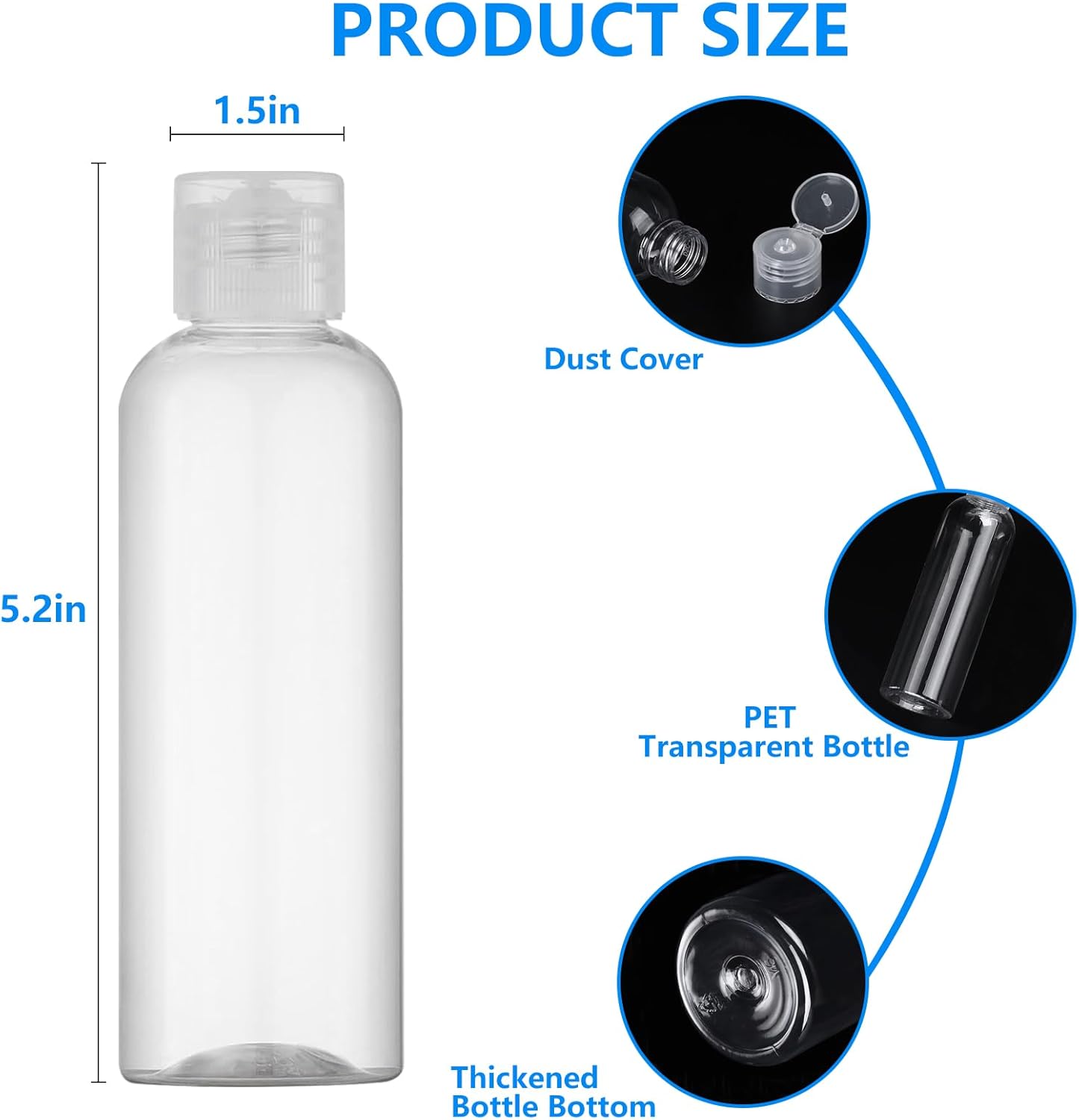 【Durably Designed】Featuring a threaded bottle mouth design for easy opening and a secure double-layer seal, these clear travel size bottles are perfect for on-the-go use. The flip cap and spiral bottle mouth ensure a tight seal, preventing leaks even when turned upside down.