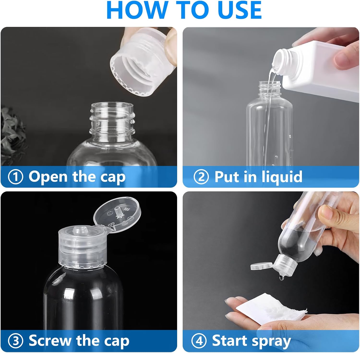 【Effortless Usage and Portable】This refillable 100ml travel bottle is easy to use. You can use a funnel to dispense the liquid or pour it directly into the bottle. Its compact and lightweight design allows you to carry it around with ease, without taking up much space in your bag. Perfect for on-the-go use wherever you may need it.