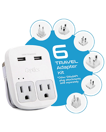 Ceptics World-Way Includes 6 adapters – Europe (Type C), UK (Type G), US (Type B), Australia/China (Type I), Germany/France (Type E/F), Japan (Type A) compatible outlets in most of Europe, Asia and more. Other SWADAPT attachments sold separately