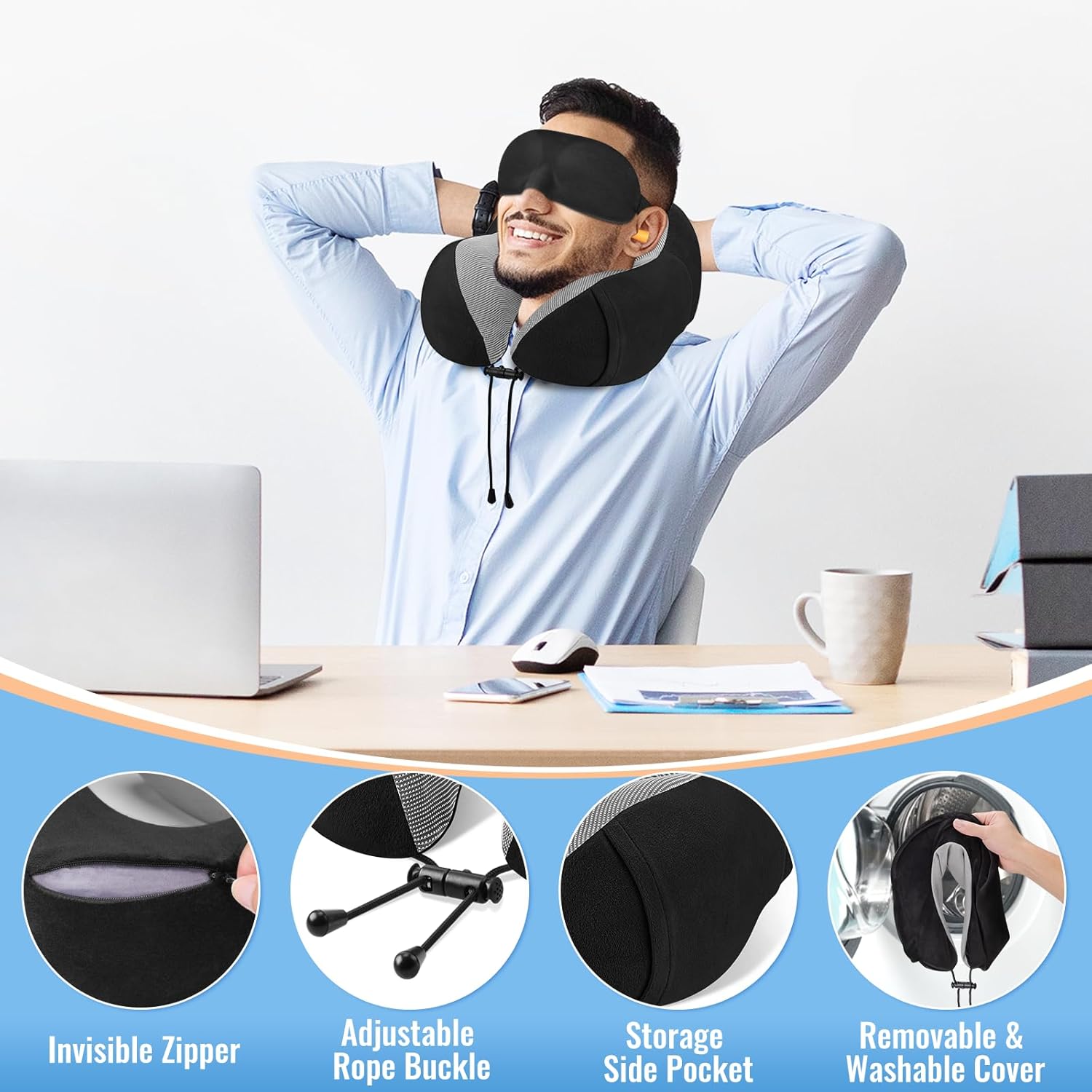 CloudBliss Travel Pillow Premium Memory Foam, Comfortable & Supportive Neck Pillow, Sleeping Neck Pillows for Travel, Airplane Pillow for Sleeping Airplane, Car, Office and Home(Black)