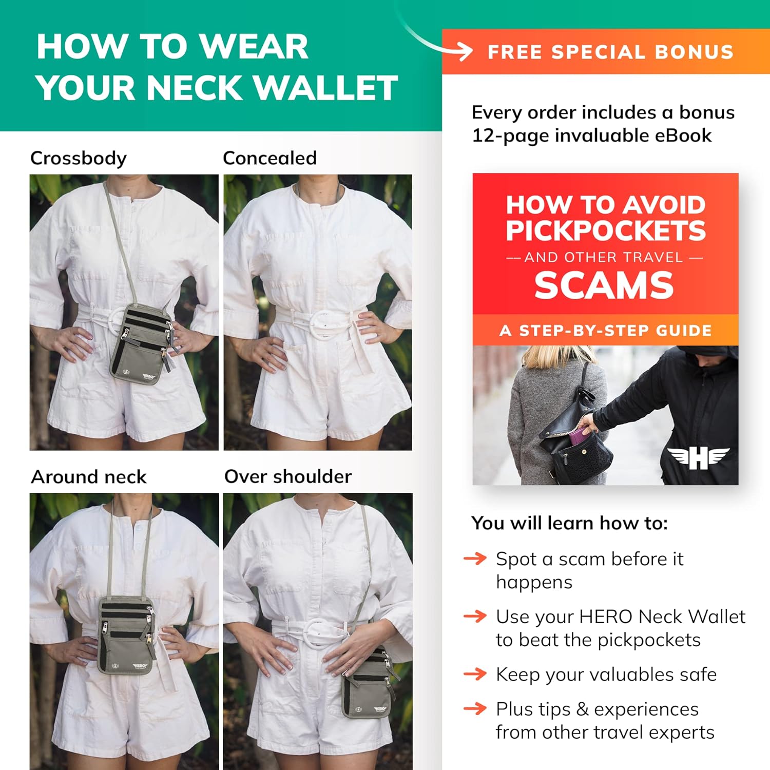 HERO Neck Wallet, RFID Blocking Passport Holder, Easy to Conceal Travel Pouch