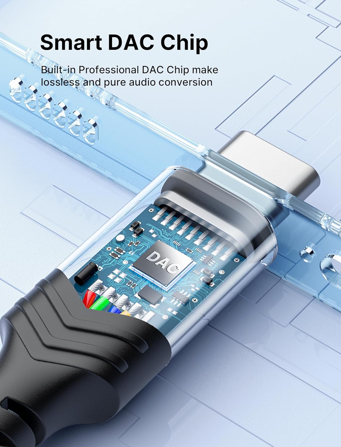 【Smart DAC Chip】The USB C to 3.5mm audio adapter features a Smart DAC chip. It is low power consumption, excellent and stable decoding performance, and maximum support for 16Bit/48Khz audio sampling rate. The DAC chip can also convert digital audio signals to analog audio signals and keep the original sound quality of your headphones. The 3.5mm female port compatible with CTIA. [Note: Not compatible with OMTP, TS and TRS microphone-only devices are not supported!]
