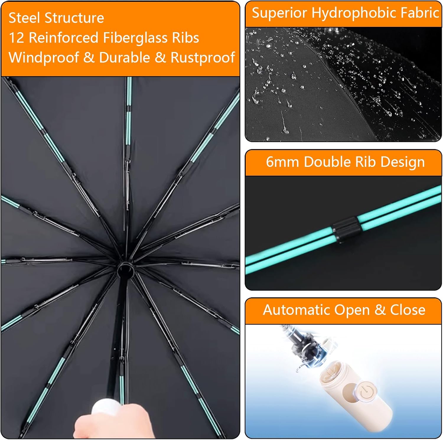 Large Double-Ribs Umbrella Automatic Folding Umbrella for Women Men, Travel, UPF 50+ UV Protection