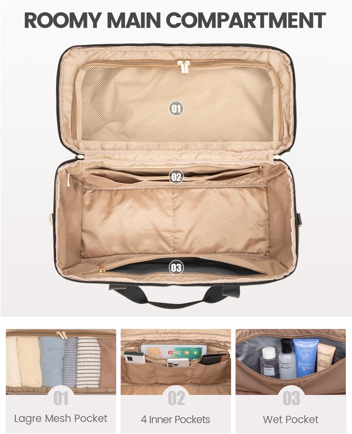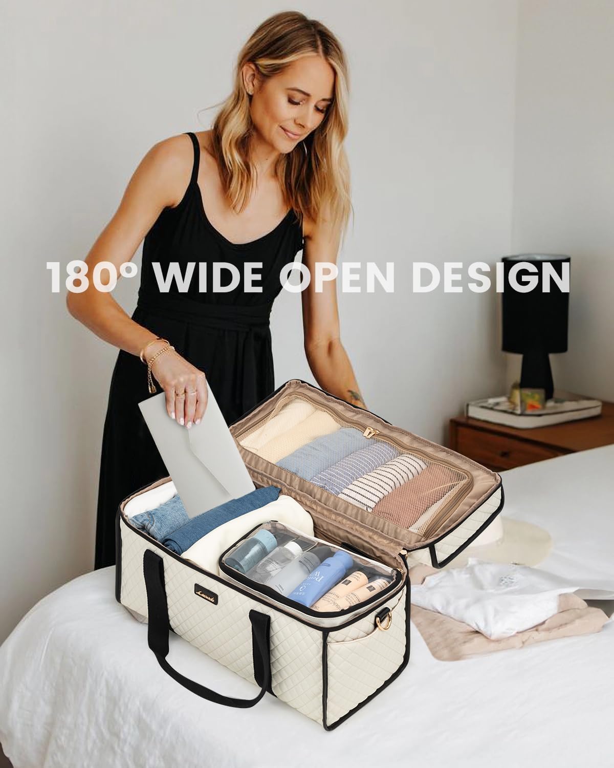 LOVEVOOK Travel Duffle Bag, Weekender Bags For Women, Carry On Duffel Bags For Airplanes, Overnight Bag With Toiletry Bag, Hospital Bag for Labor and Delivery, Yoga Gym Bag with Wet Pocket, 3Pcs Set