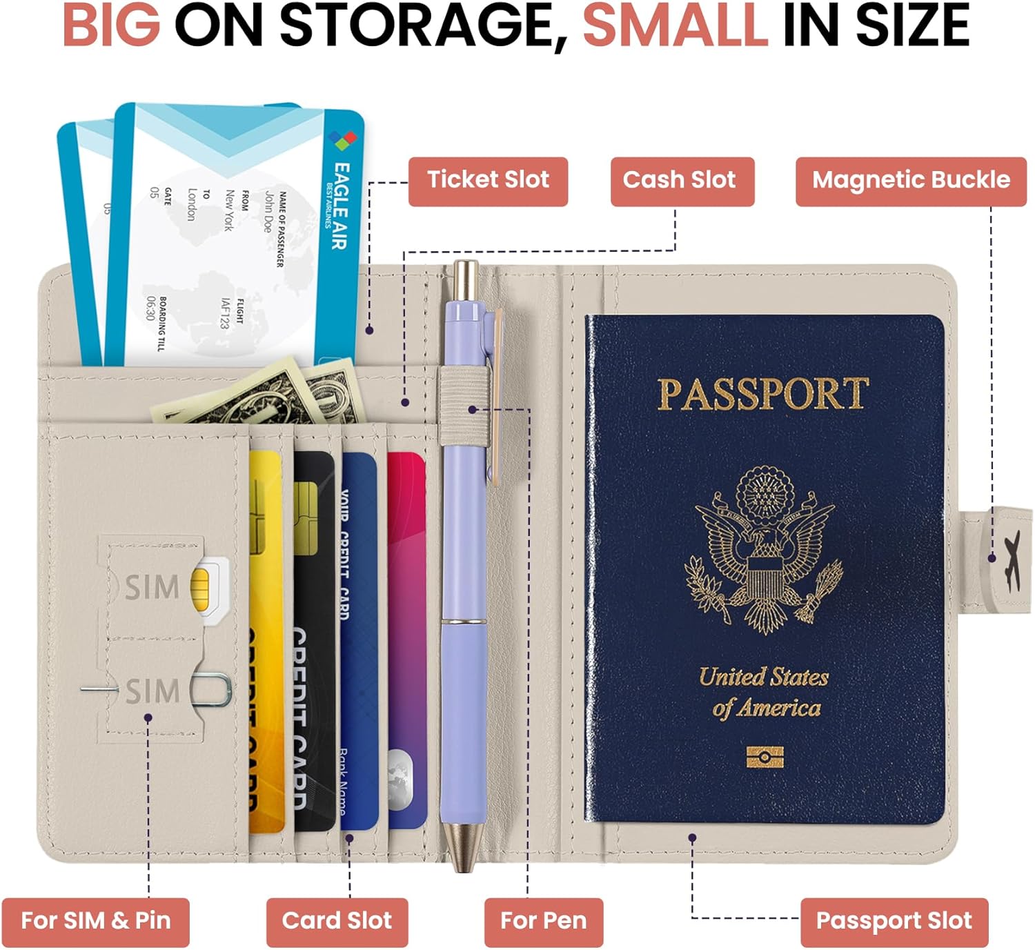 Instant Access & Magnetic Closure: Access your travel essentials in a snap. Our passport holder features a smooth magnetic closure for quick entry and secure storage – no more fumbling with zippers or snaps. Designed for effortless travel.