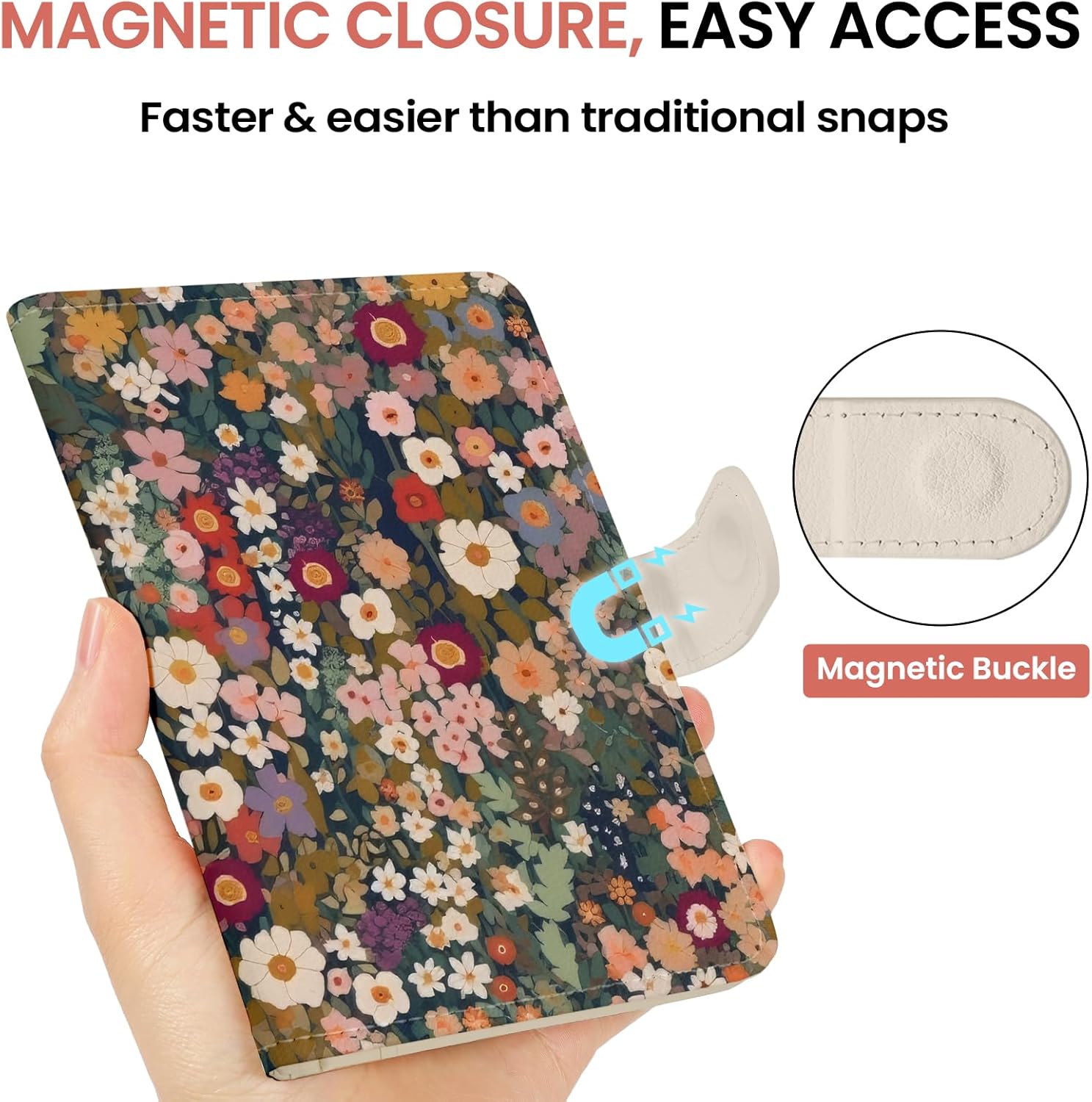 Passport Holder for Travel Essentials, RFID Blocking Leather Cover Wallet with Magnetic Closure, Aesthetic & Cute Passport Book Case for Women and Men – Flower