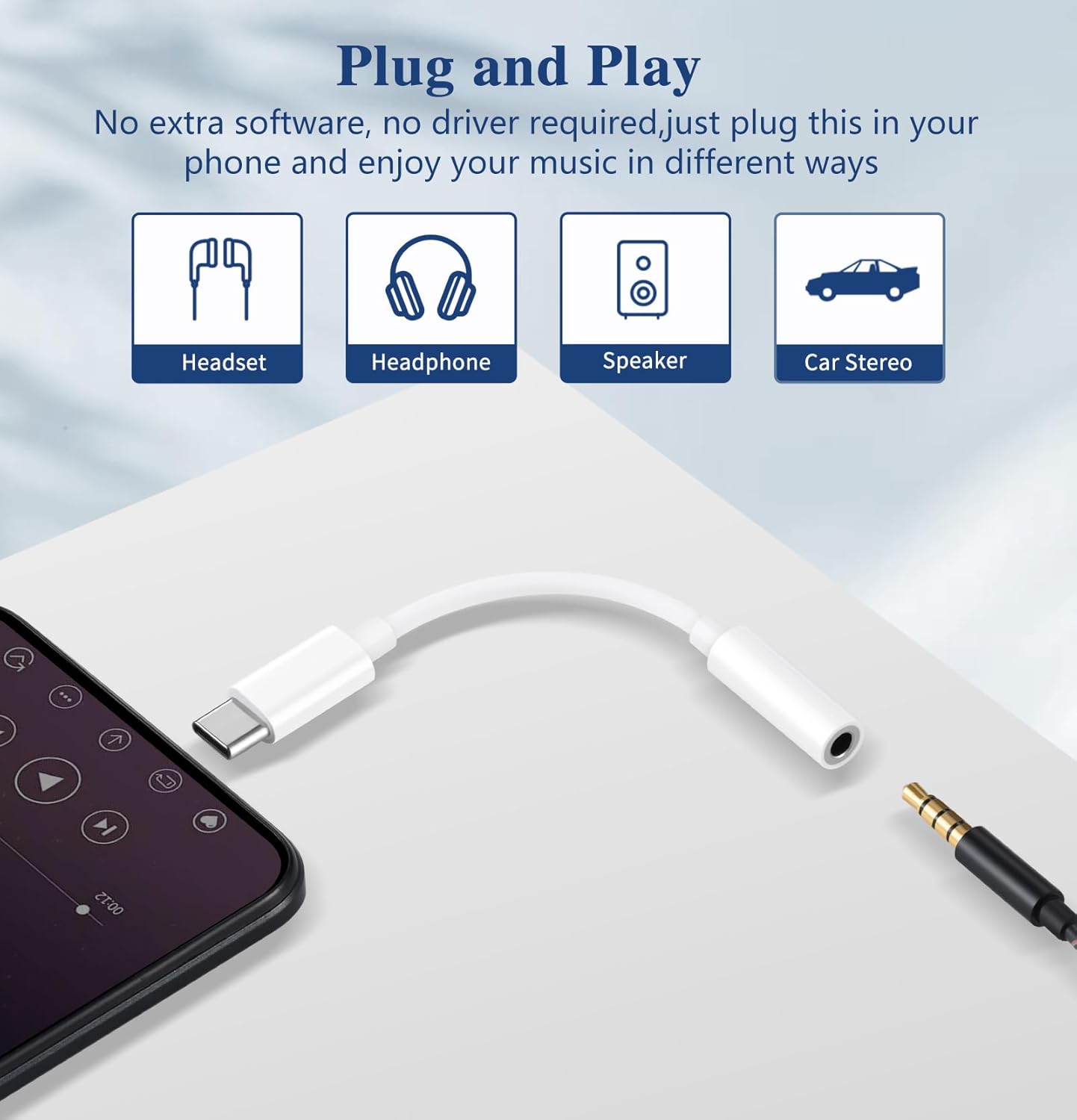 Plug-and-Play Convenience: No drivers, no setup. Just plug this dongle adapter usb c in and start listening. Whether it’s music, podcasts, or calls, this usb-c to 3.5 mm headphone jack adapter makes switching devices effortless.