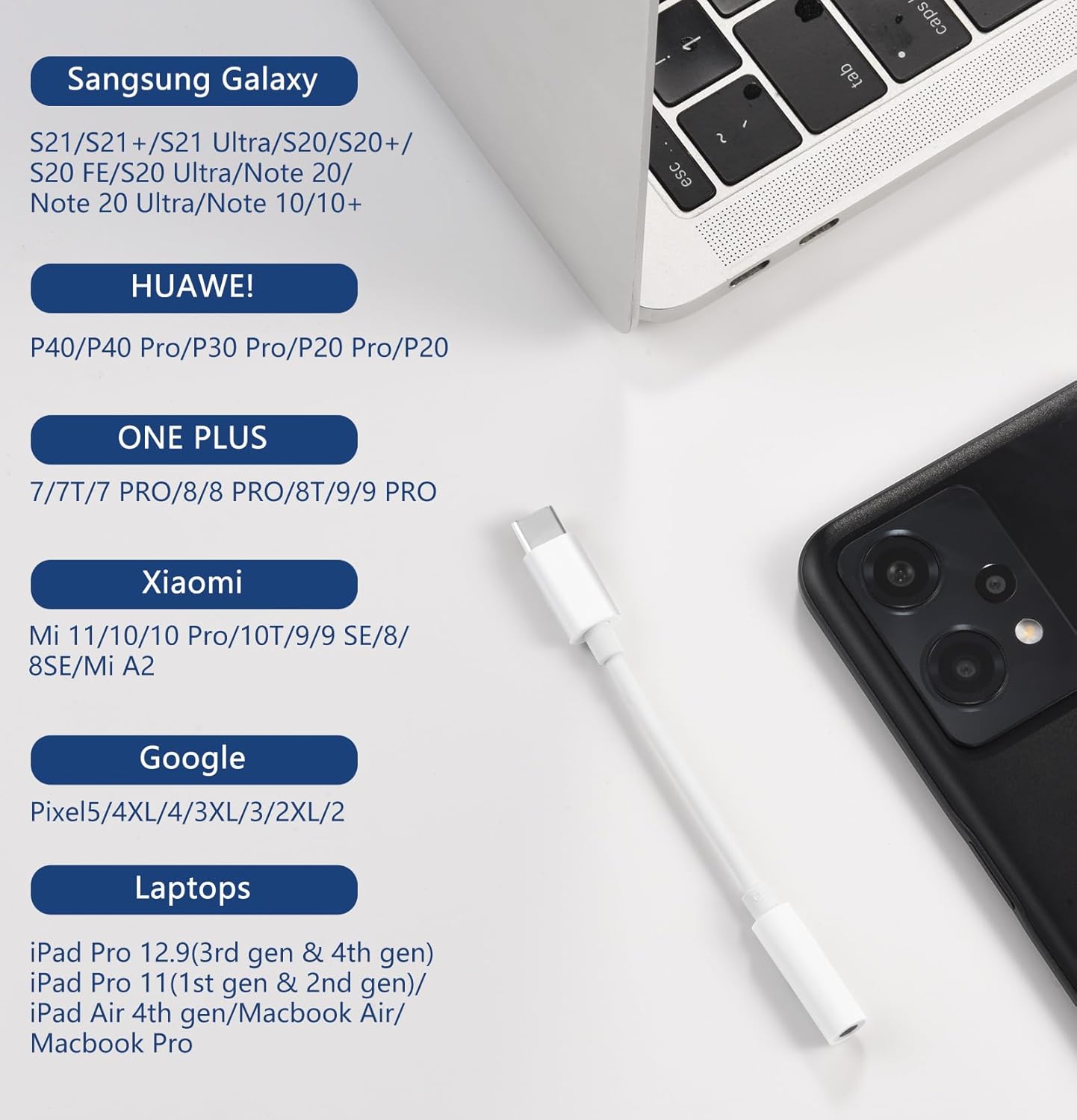 Universal Compatibility: This 3.5mm to usb c headphone adapter Compatibility with Most USB-C phone and tablet. Example: Compatible with Apple iPhone 16 Pro Max/ 16 Pro/ 16/ 16e, iPhone 15 Pro Max/ 15 Pro/ 15/ 15 Plus, iPad Pro, iPad Air, iPad, iPad mini, Samsung Galaxy S25 Ultra/ S25/ S25+, Galaxy S24 Ultra/ S24/ S24+, Galaxy S23 Ultra/ S23/ S23+, Galaxy Tab S10 Ultra/ S9 FE Plus, Google Pixel 9/ Pixel 9 Pro/ Pixel 9 Pro XL, Pixel 8/ Pixel 8 Pro, Pixel Fold, Fire Max 11 or more