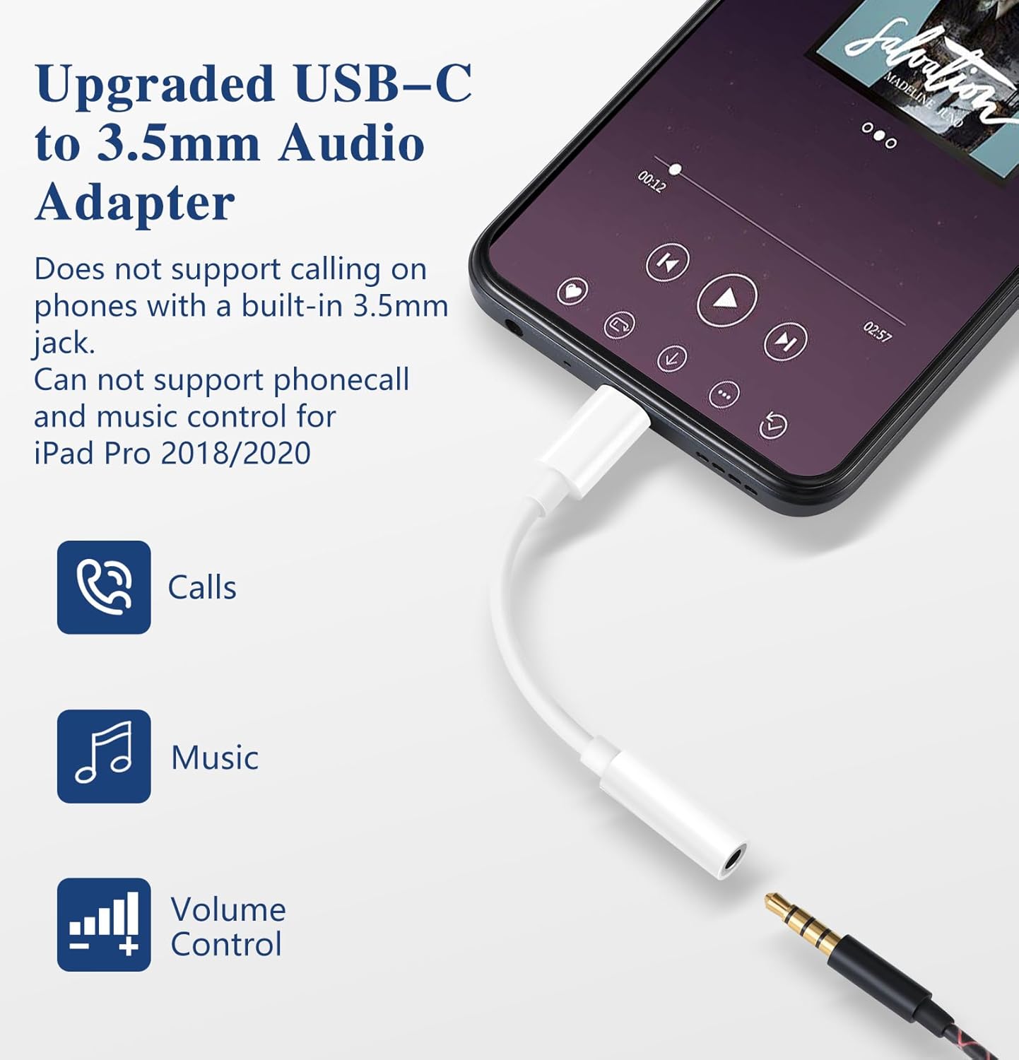 Full Audio Functionality: The usb c to headphone jack adapter Supports call answering, microphone, volume controls through wired earphones and Pause or skip a track. This aux to usb c adapter retains all the functions of the headset. Just like you are used to Listen to music, watch videos, or chat. (*Note: Apple EarPods with 3.5mm jack do not support mic/volume controls.)