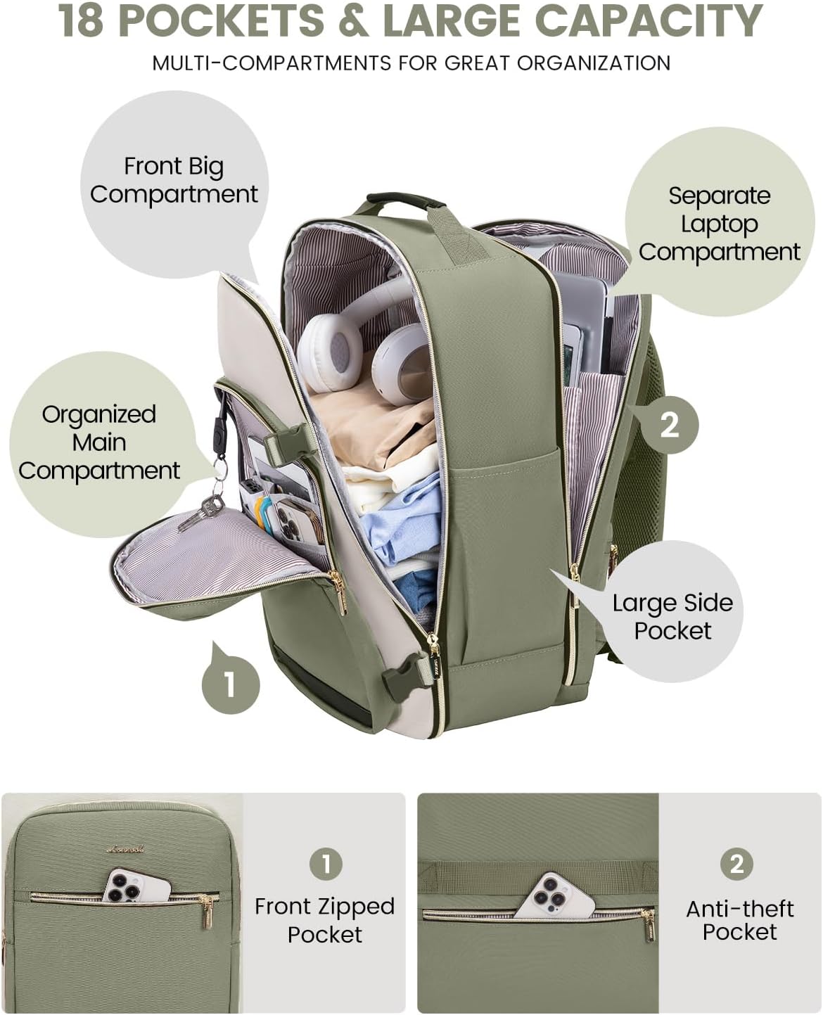 【Versatile & Airline-Approved】Sized at 18 × 14 × 8 inches, this carry-on backpack fits perfectly under the seat or in the overhead bin. Approved by Spirit, Frontier, JetBlue, and other budget airlines, it’s the ideal personal item for hassle-free air travel.